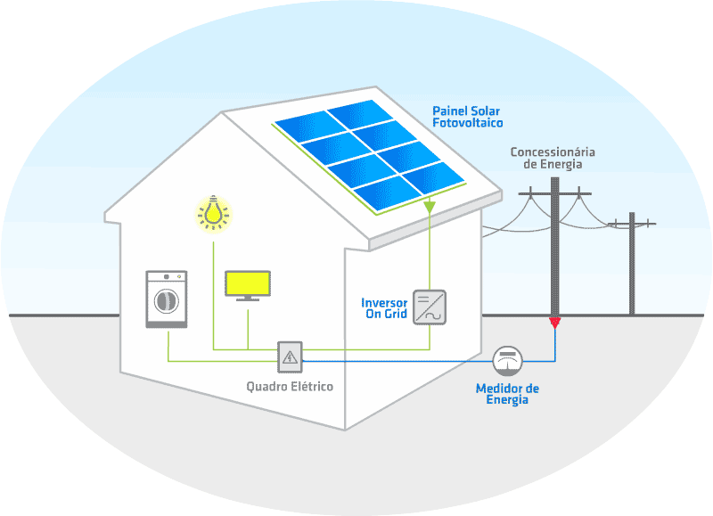 O funcionamento de sistemas de energia solar fotovoltaica utiliza painéis solares que captam a luz e geram, pelo efeito fotovoltaico, correntes elétricas contínuas, que são convertidas para correntes alternadas pelo inversor solar. Dessa forma, a eletricidade está pronta para ser distribuída no local, gerar créditos de energia ou ser armazenada.